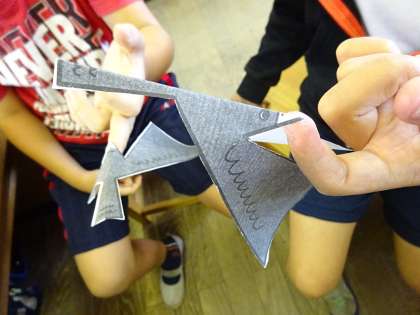 最後に,バランスバードを作って持ち帰りました。紙や10円玉,空き缶は簡単に用意できるものですので,良かったらお家の方でもチャレンジしてみてください。