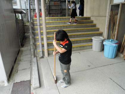 1年生までは自分たちの教室と教室前廊下だけが掃除の担当でした。が,2年生になって,運動場や階段など,校内の様々な場所が掃除の担当として加わりました。