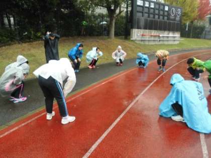 会場についてからは,荷物を置き,いつも通り,準備運動とアップをしました。