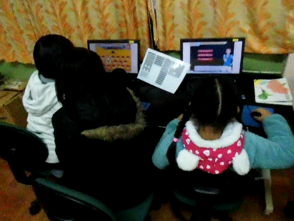 子どもたちは,マウスやキーボードでの入力に戸惑いながらも,楽しく学習することができました。