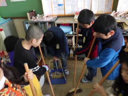また,片づけをするときに何人かの子どもたちが,自ら進んでほうきやちりとりを使って掃除をしていました。