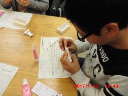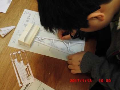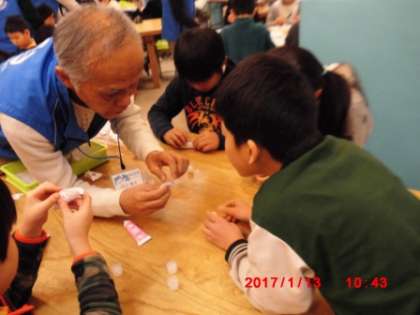紙でタワーを作る活動を通して,先端技術の原理や基幹製品の仕組みを学習しました。一枚の薄い紙でも組み合わせ方や折る時の形を工夫することで,驚くほどの強度をもつことが分かりました。「ものづくり」の企業で働いておられた方に教えてもらいながら,楽しそうに活動していました。