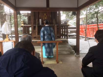 まず最初に,自治会館で『点検訓練』を行い,次に御旅所で『無火災祈願』を行いました。