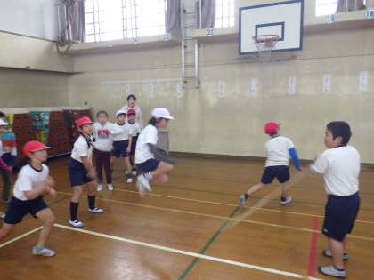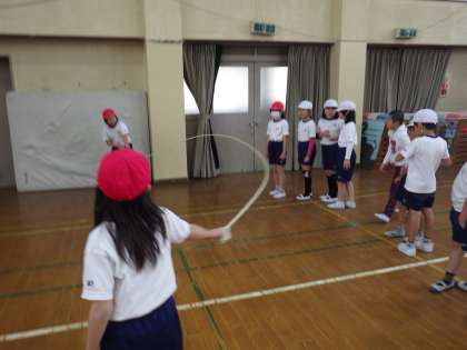 今週木曜日の大縄大会に向けて,今日の体育の時間に『8の字跳び』の練習をしました。