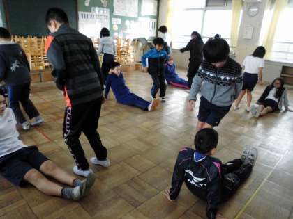 週末に雪が降り,運動場の状態が悪かったので,陸上部は室内で活動をしました。