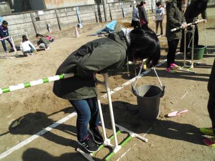 実際に,バケツに砂を入れて持ち上げてみると,「さっきは軽かったのに重くなった!」などと感じることができました。