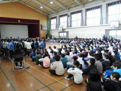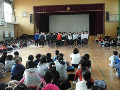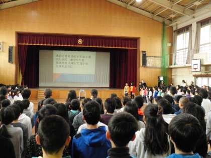 最後は,全校のみんなで「心の中にきらめいて」を合唱しました。