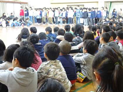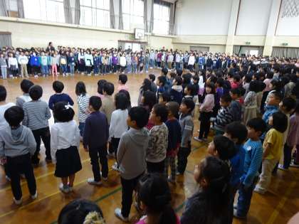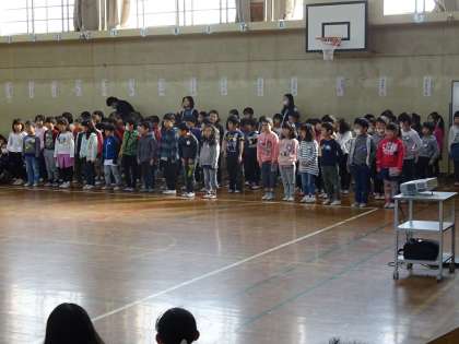 最後には『心の中にきらめいて』を全校児童で合唱しました。みんなの声が体育館中に響いており,とてもきれいな歌声でした。