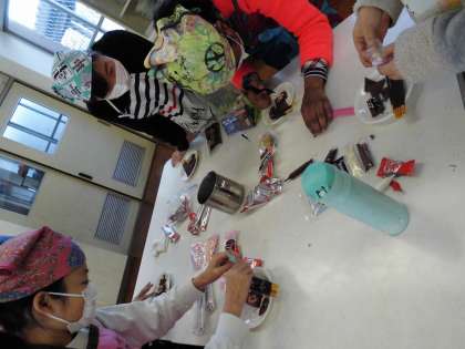 自分たちが持ってきたトッピングで,チョコレートに飾りをつけました。