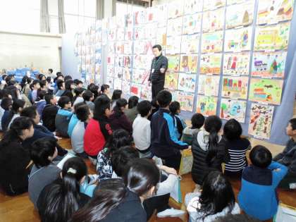 本庄先生から,鑑賞のポイントをきいてから,「次は、こんな風にかきたい」「今度,色使いを真似してみたい」と思うような作品を探しながら鑑賞しました。