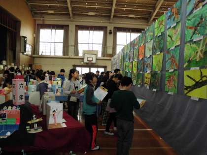 自分たちの作品はもちろん,他の学年の作品をじっくりと鑑賞していました。