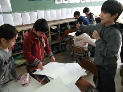 3月6日(月)には,京都市身体障害児者父母の会連合会の方に来ていただき,子どもたちが考えたことを聞いてもらいます。その発表に向けて今,準備を進めています。グループで話し合いを重ね,考えたことを分かりやす伝えられるように紙芝居やペープサートなどを作っています。