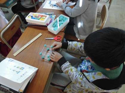 本日は,ストローとねんど玉を使って箱の形を作りました。