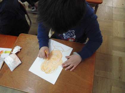 図画工作科の時間に「自画像」に取り組んでいます。