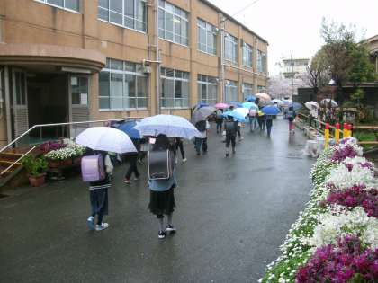 子どもたちが下校するときは,あいにく雨が降っていました。