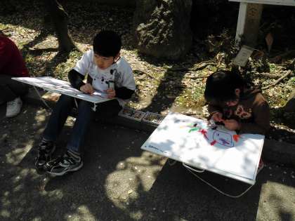 しいのみのみんなは,「春」を画用紙いっぱいに描いています。