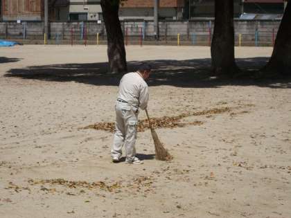 管理用務員さんが,ほうきで集めていつもきれいにしてくれています。