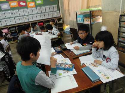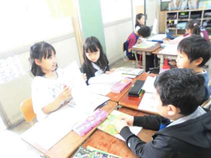 理科の学習で,見つけた学校の自然を友だちと交流しました。
