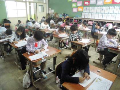 今日は3年生になっての初めての漢字の小テストをしました。