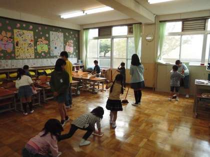 自分たちで教室をピカピカにしたいと,頑張っています。