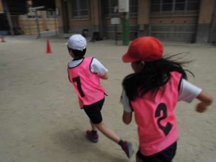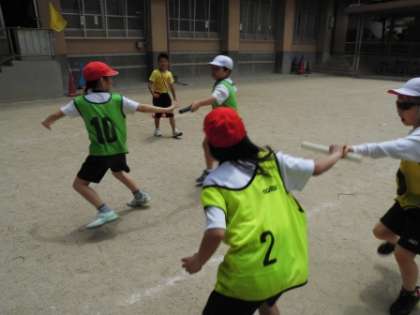 今日の3時間目の体育は,リレーでのバトン渡しを確実にすることをめあてにがんばりました。