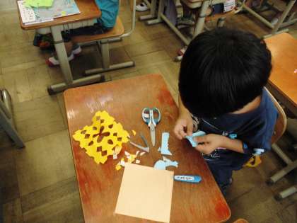 図画工作科「チョキチョキかざり」の学習で,おりがみをおって,きって,ひらくと・・・