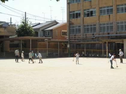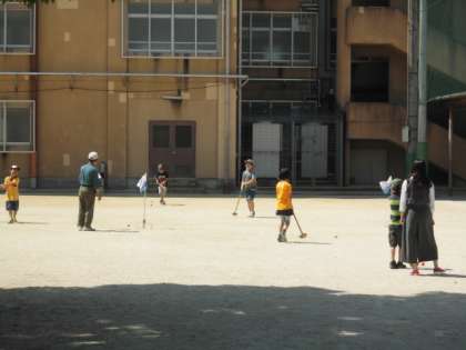 今年度第1回目の土曜学習「グランドゴルフを楽しもう」を行いました。2ラウンド行いましたが,1ラウンド目の方がよかった人や2ラウンド目の方がよかった人,ホールインワンを出した人などいました。どの子どもたちも,地域の方にプレーのルールやマナー,コツなどを教えてもらいながら,とても楽しんでいました。「来年もまたやりたい」という子どももいました。