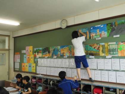 担当のクラスへ入って,子どもたちと遊んだり,勉強を教えてあげたりしました。また,給食も一緒に食べ,掃除も一緒にしてくれました。最終日は,6年生の外国語活動の授業に参加したり,教室の掲示や学校全体に係る仕事もしてもらったりしました。