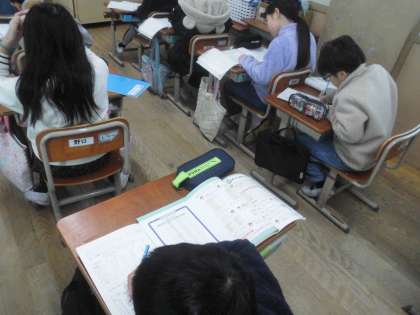 2つのことがらを表にかく練習をしました。表題をかいてから、2つのことがらに目をつけて、記録の上から順に表に「正」の字をかき入れました。その後、「正」の字を数字にかき直し、それぞれの合計を計算しました。一つ一つ確認しながら集中して表をかくことができました。