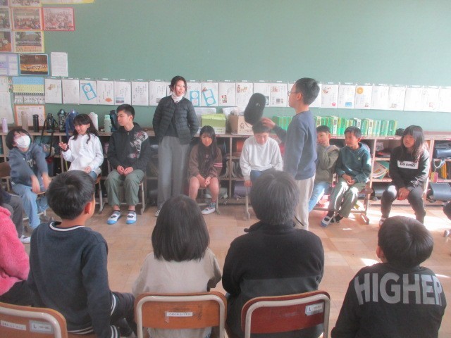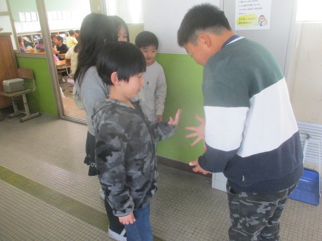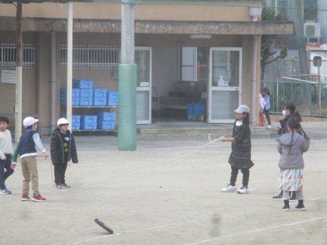 3学期になって初めてのたてわり遊びです。たてわりグループで仲良く遊んでいます。外は日差しがあるものの冷たい風の吹く1日でしたが、元気に駆け回って楽しんでいました。