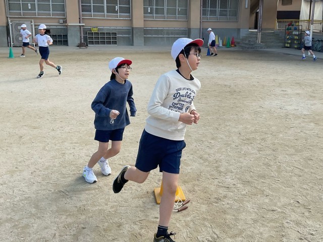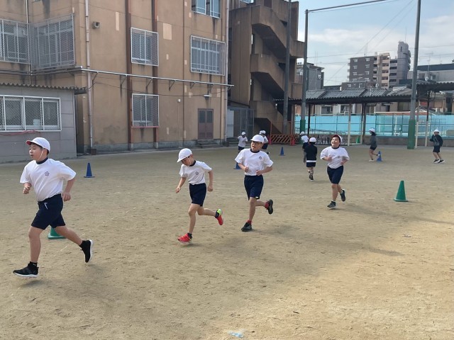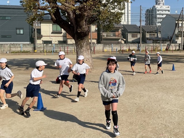 なわとびで適度に体を温めたあとは、まず3分間のジョギング。