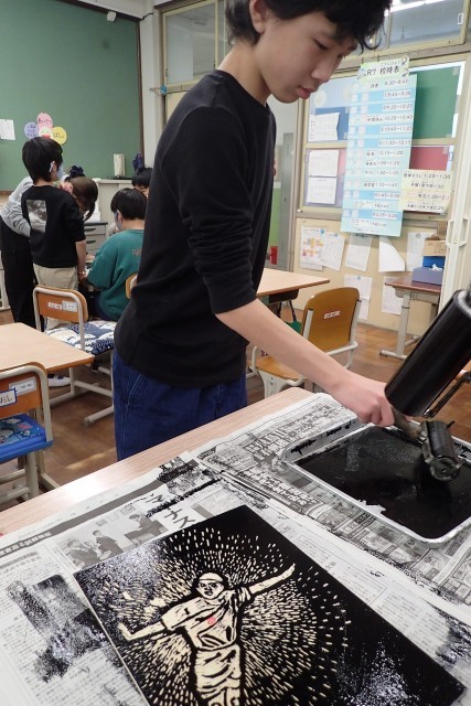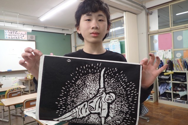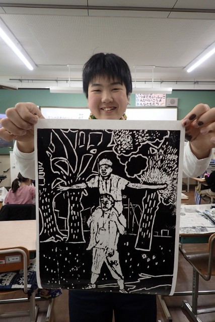 しいのみ学級の6年生は、組体操の一場面を題材に、動きや表情、衣服のしわまでよく見て、細かい部分も丁寧に彫り進めました。学年の集大成として意欲的に取り組むことができ、素敵な作品に仕上げることができました。