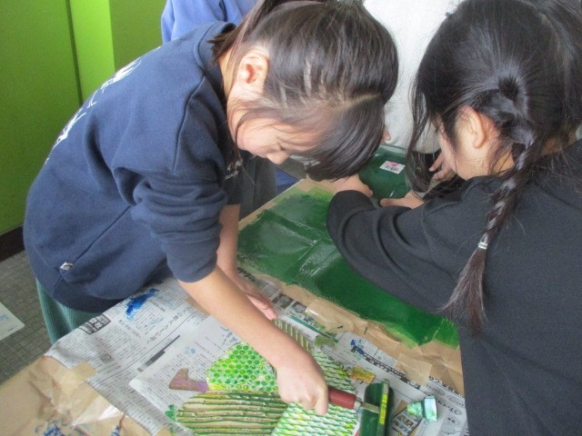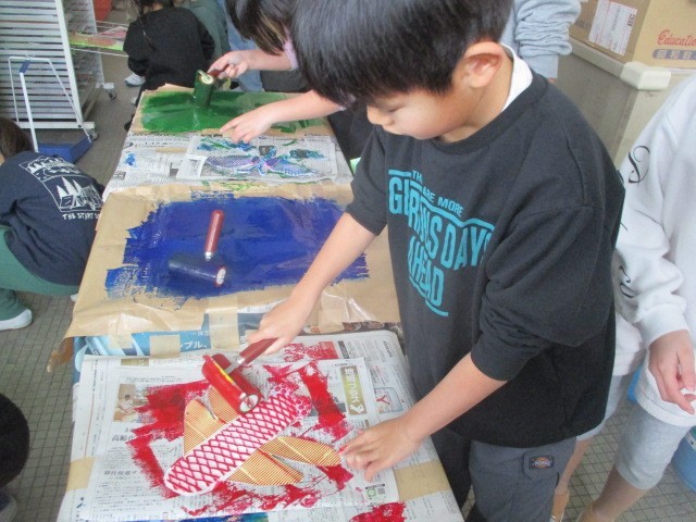 3年生では、生き物の紙版画に取り組みました。