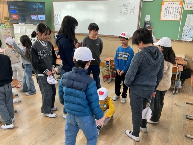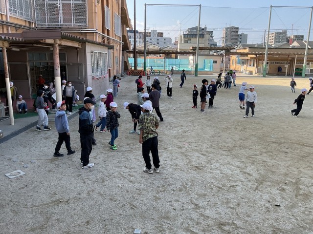 今日は2月のたてわり遊びの日。1年生から6年生までのみんなが集まり、”ロング昼休み”としてたてわり遊びがスタートしました。