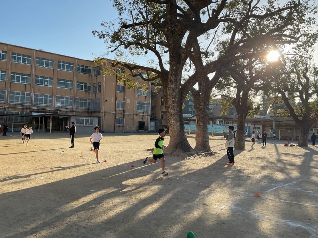 放課後、七条小学校に、七条第三小学校、西大路小学校の6年生数人が集まりました。先日の「京キッズRUN」に出場予定だった3つの小学校——同じ中学校エリアの仲間です。