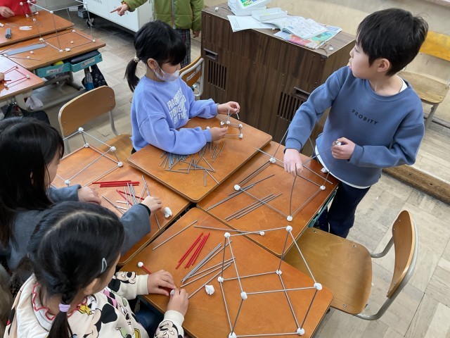 本日は、粘土とひごを使って、箱の形を作りました。長方形や正方形になるように気をつけながら、5種類の長さのひごから選んで箱作りを楽しみました。