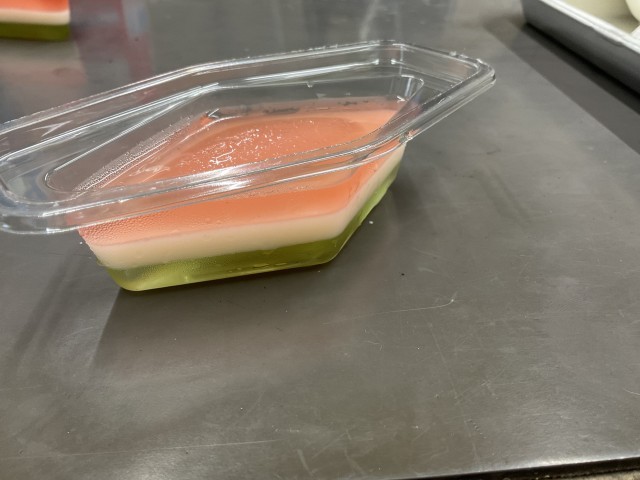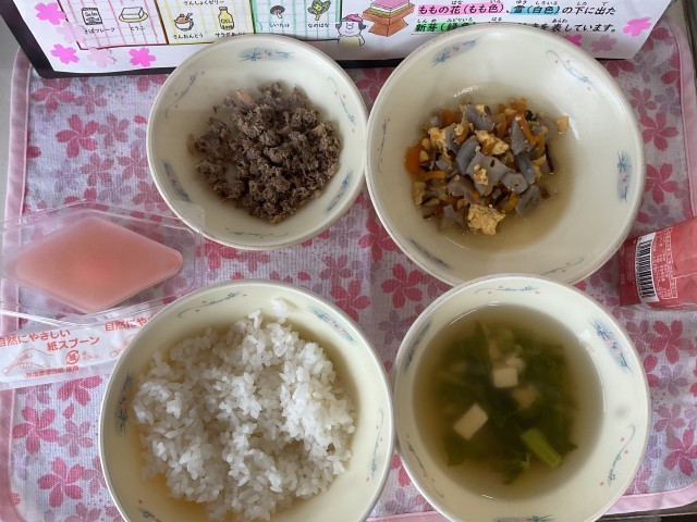 「さんしょくゼリー」は、ひなまつりにちなんだデザートです。上から桃色・白色・緑色の三色に分かれており、それぞれ“健やかな成長”や“清らかさ”を願う意味が込められています。やわらかい食感で食べやすく大人気でした。