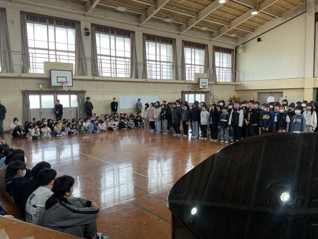 今日は6年生を送る会、5年生からは「サザンカ」の歌を贈りました。