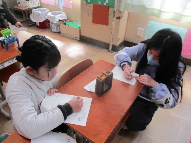まだ3年生の手には大きくも感じる金づち。