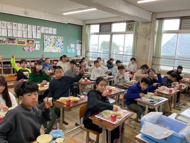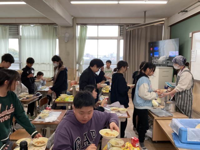 今日は 今年度最後の給食 でした。6年生にとっては、小学校生活最後の給食です。みんなに大人気の「ぷりぷり中華炒め」のお代わりに行列ができていました。