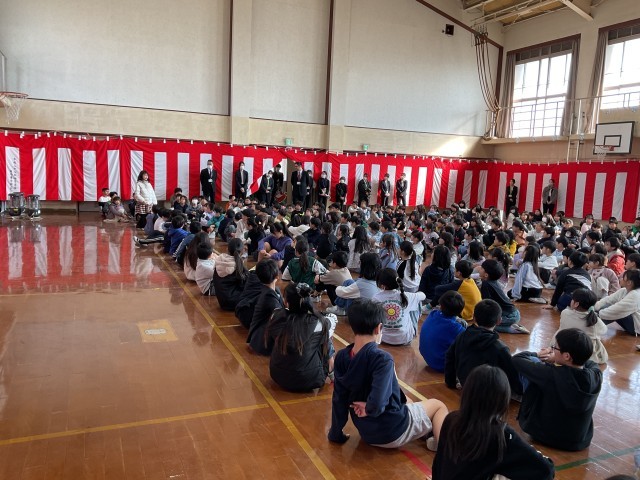 全校児童が体育館に集まり、1年間の学びをしめくくります。