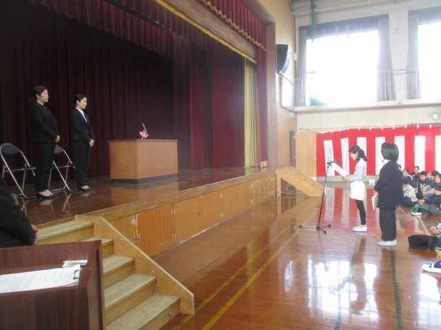 今日は離任式。小学校を離任される教職員の方々とのお別れの式を行いました。