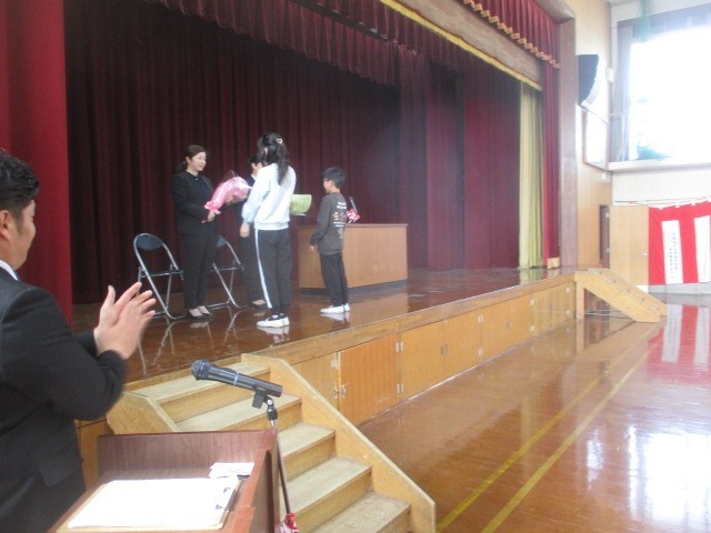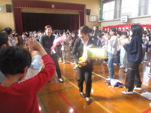 校長先生からの紹介のあと、離任される教職員の方お一人おひとりからお話をいただきました。どの言葉にも、この学校や子どもたちへの思いがこもっており、真剣に耳を傾ける姿が印象的でした。学校を代表して5年生からは、心のこもったメッセージを送ります。そして花束の贈呈です。最後は、みんなで花道を作ってお見送り。大きな拍手に包まれながら、新たな一歩を踏み出される姿を見送りました。新天地でのご活躍を、心よりお祈りしています。