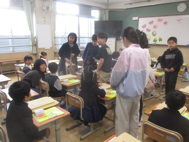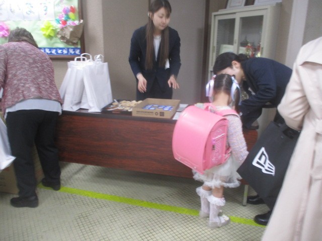 そんな中、6年生が大活躍してくれます。緊張している新1年生の手を引いて、新1年生を教室までエスコートそて机の場所やロッカーの場所を教えてくれます。