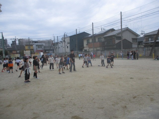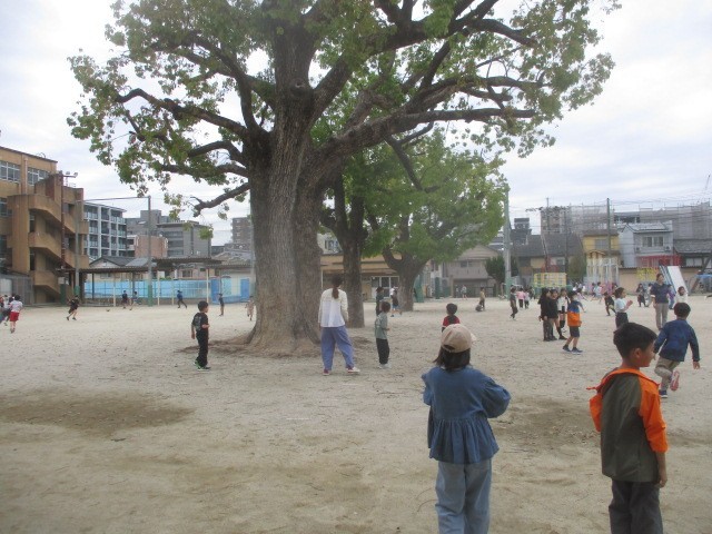 初めての休み時間。新しい学年、新しいクラス、新しい先生とも一緒に運動場で元気いっぱい遊んでいます