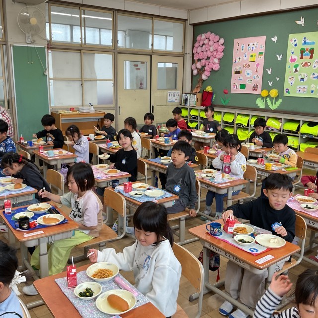今日から始まる給食の時間。食べることの楽しさや、みんなで食べる心地よさを感じながら、少しずつ学校生活に慣れていってほしいと思います。
