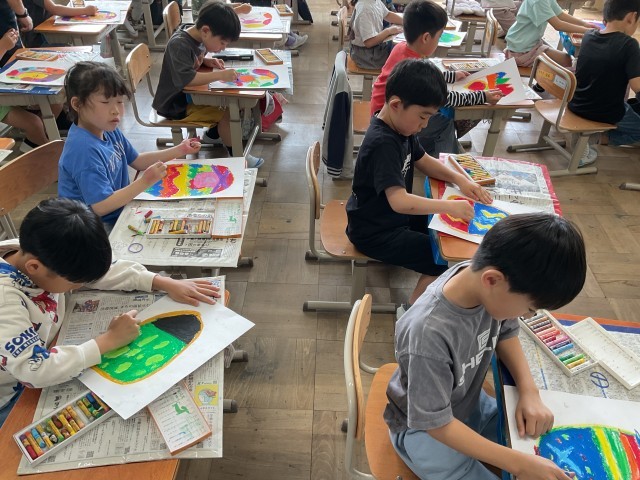 ふしぎなたまごが、どんどん出来上がりました。色鮮やかなたまごから、どんなものが生まれてくるのか。次の授業まで温めておきましょう。