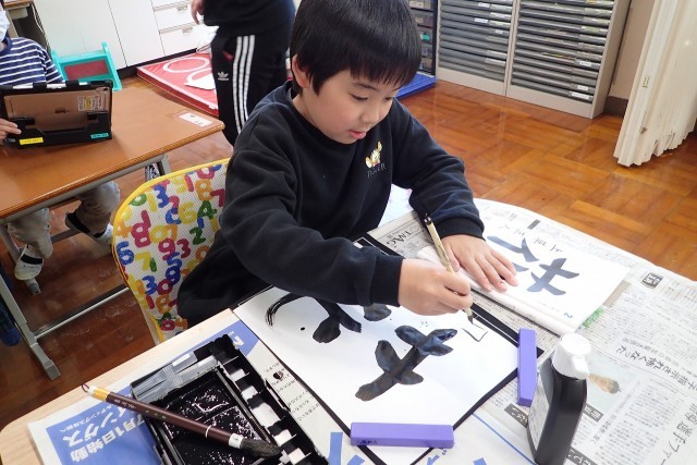 太筆と小筆を使って、大きく書くことができました!