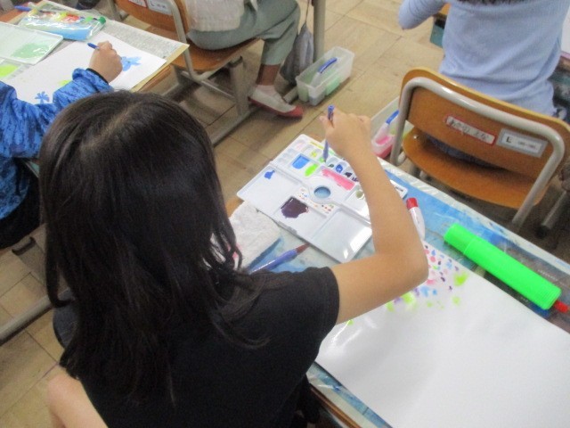 3年生になって初めての図画工作科の学習では、絵の具を使って作品を作りました。
