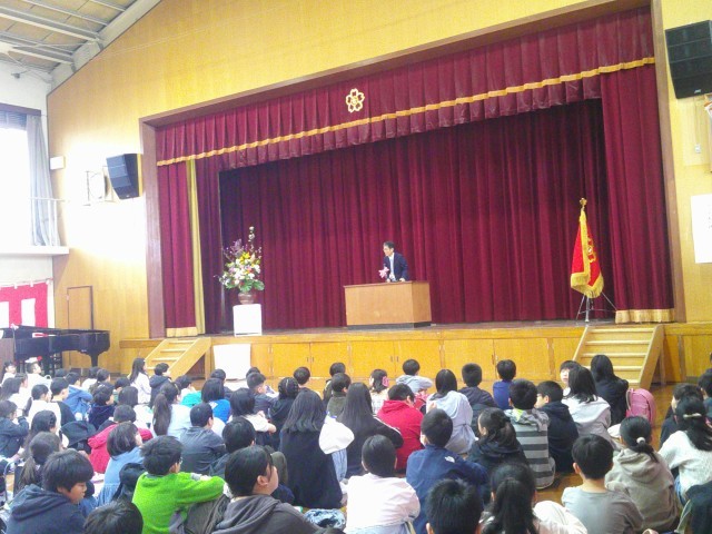 3月30日(月)今日は離任式。小学校を離任される教職員の方々とのお別れの式を行い...